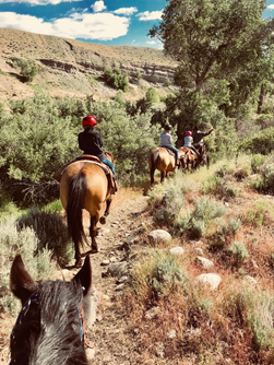 The next day is when the real fun began…9am HORSEBACK RIDING! YAY! I must note that I knew it was going to be chilly in the mountains at night…but I WAS NOT prepared for how cold it was. In Cody it got down to 45 at night….but that was just a taste of what was to come. I bring this up because at 9am I was in layers for this ride. I recommend bringing a hat and light gloves with just in case. But don’t worry…it warms up during the day!